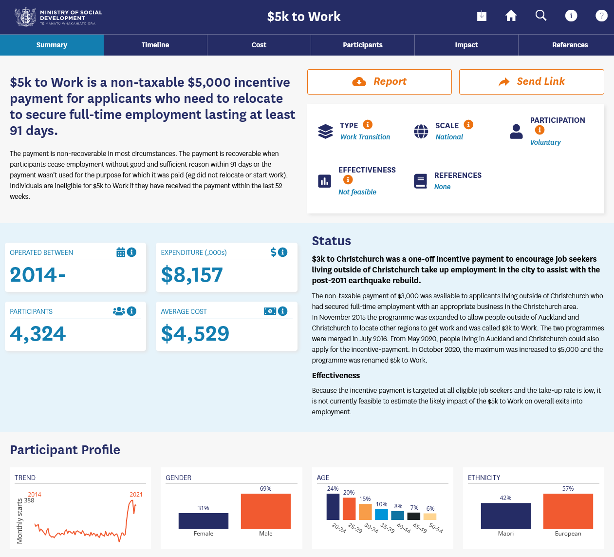 Research and Evaluation is a team at the Ministry of Social Development that is responsible for evaluating the performance of hundreds of employment programmes that the Ministry runs to assist job seekers with getting into employment.