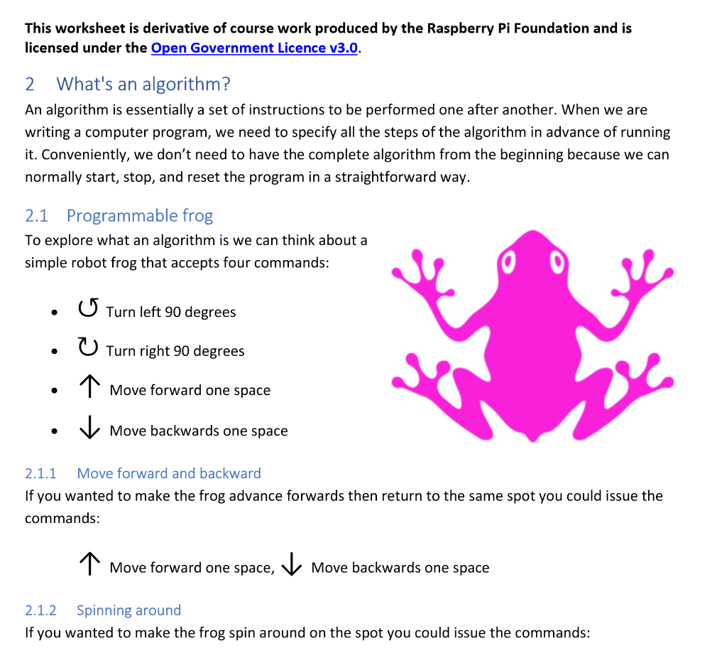 As part of a wider initative to build empathy in cross disciplinary teams, I extended these Intro to Programming Worksheets, originally created by the Raspberry Pi Foundation, to run a short course on understanding programming.