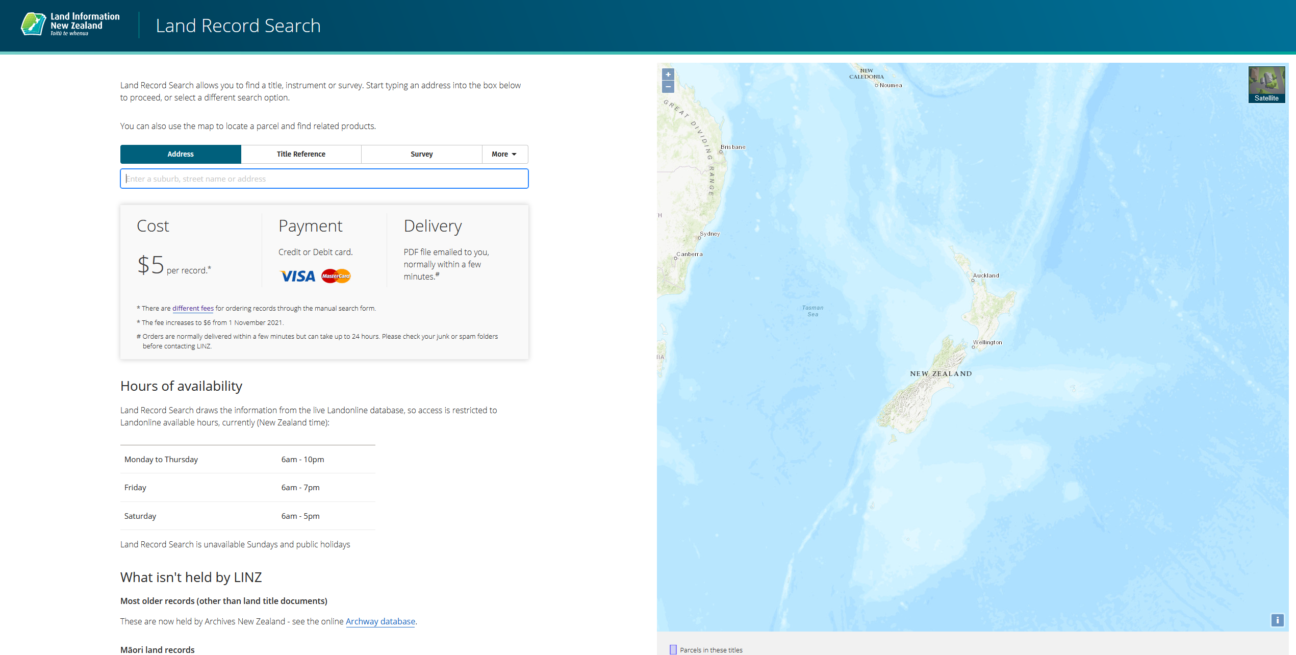 Land Record Search is a web application to search for and purchase documents that comprise the official Land Register of New Zealand